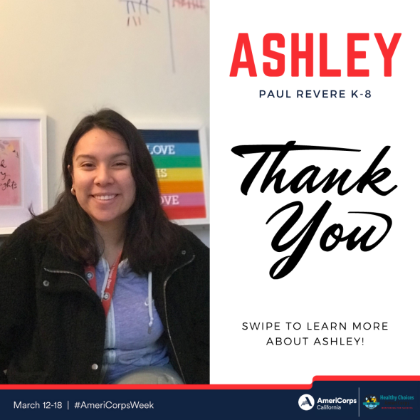 "Ashley is a team player and is always willing to help out in whatever is needed at Paul Revere. She is amazing with students all the way from K-8. Students notice on the day she's out and ask where she is because her presence is missed. She makes coming to work easier because of all the support she gives to Wellness. For these reasons and many more Ashley is AWESOME!"