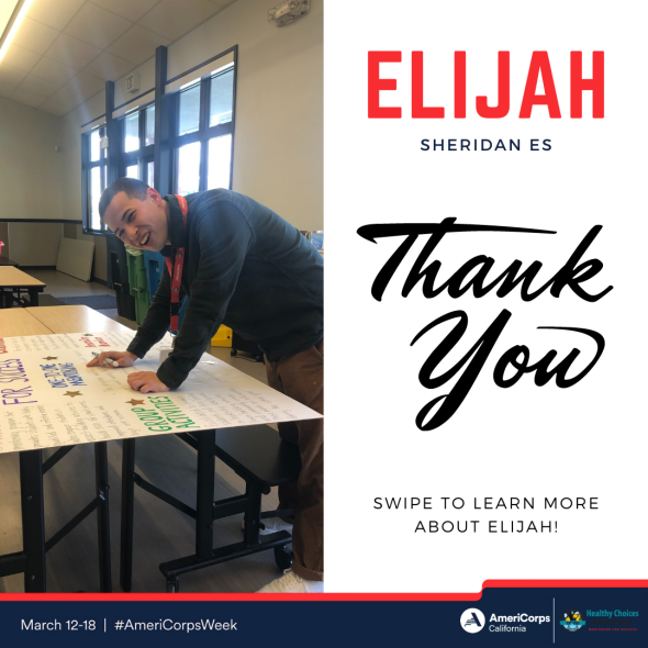 "Elijah's work on Sheridan Elementary's mentoring program has been nothing but amazing. Elijah has been leading well organized and planned monthly activities that both students and mentors enjoy. He also has increased the number of students that are being mentored at Sheridan. He is affable, kind, seeks opportunities to connect with all of the students and sets boundaries that work."