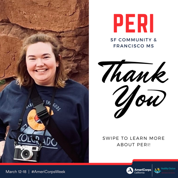 "Peri is amazing! They are so thoughtful, creative and compassionate in every aspect of their work. They have started to build a peer mentoring program at SF Community and have made strong connections with the students. Peri is very much a part of the school's community & SF Community feels honored to have Peri on its team!"