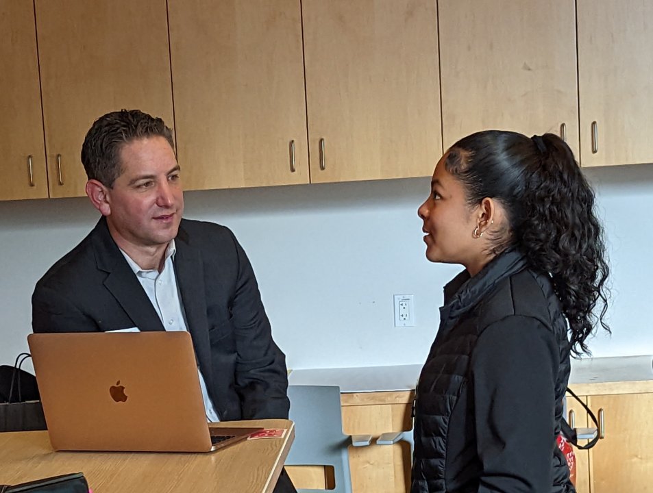 A Student Ambassador meets with Superintendent Matt Wayne to provide input into the direction of the Mission Bay Hub.