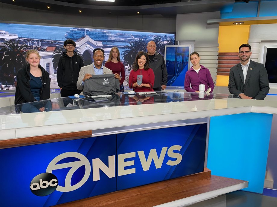 Below is a photo from one our field trips to our partners at KGO-TV/ABC 7. Students were shown how live news is produced and met with the people that make it happen. On our most recent visit our students presented anchors Kristen Sze and Julian Glover with Independence High School swag.