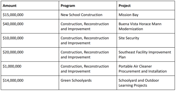 San Francisco (November 3, 2021) - The San Francisco Board of Education unanimously approved a plan for spending the remaining $100 million in funding from a $744 million general obligation bond approved by San Francisco voters in 2016 for modernization of San Francisco Unified School District (SFUSD) facilities. Below is a list of approved allocations.
