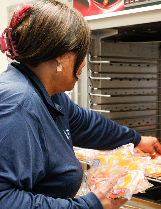 Pamela shared that she enjoys getting to see students come in each day, learn about what meals they prefer, and get to say, “Good morning”, especially when students may not be having a good day. For Pamela, making sure students have access to a hot nutritious meal each day is so important because she recognizes that not all kids have that at home. In her time with SNS, she has also gotten to learn about nutrition and wellness and how she can eat better for herself, she even walks to work now!