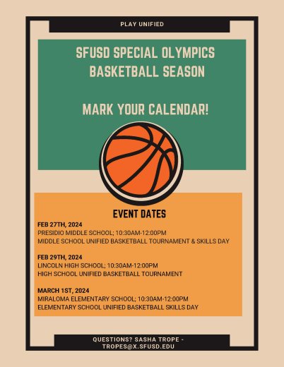 Our three large events include soccer, basketball, and track & field. Usually, these events take place in winter, spring, and late spring/early summer. Our goal is to expand the number of students we reach with our events within SFUSD and provide more events for them to partake in, in the future. ​