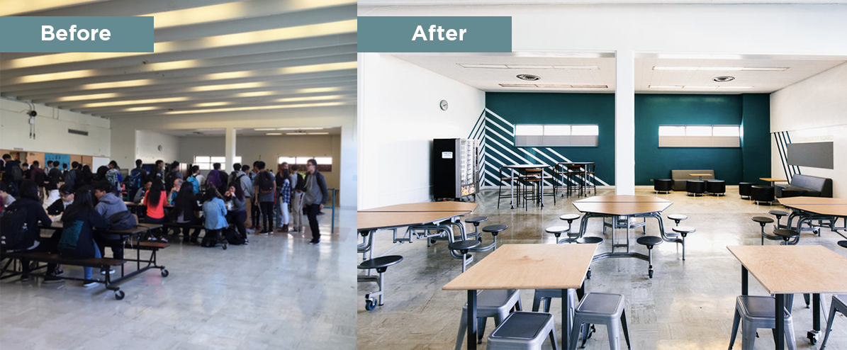 We’re rethinking what school dining looks like. Welcoming dining spaces that students enjoy are an essential part of the school meal experience. In the 2018-19 school year, we completed five dining space redesigns. In Fall 2019, six redesigned dining spaces will open, and an additional 12 will open throughout the 2019-20 school year. With new furniture, graphics, and artwork, we’re creating student-centered spaces that reflect each individual school, supporting our goal to create dignified built environments.