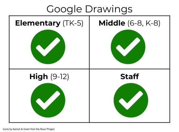 All staff and students in SFUSD have access to create, edit, & share Google Drawings.