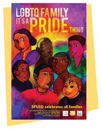 LGBTQ Pride Posters, designed for SFUSD by Innosanto Nagara, are available. See the links below to view larger versions of the posters to download, print and display. Printed copies may also be requested and mailed to your schools.
