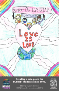 In 2010, LGBTQ Support Services held a district-wide poster design contest for students. Winning designs were selected from Harvey Milk Elementary, AP Giannini and James Lick Middle Schools, and Burton high school.