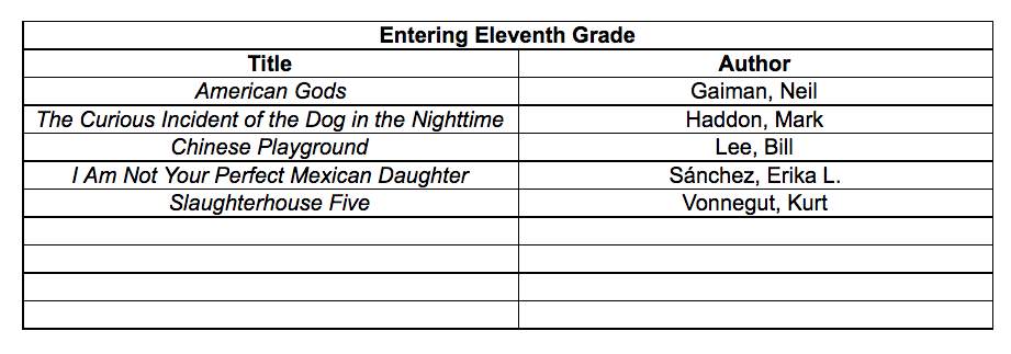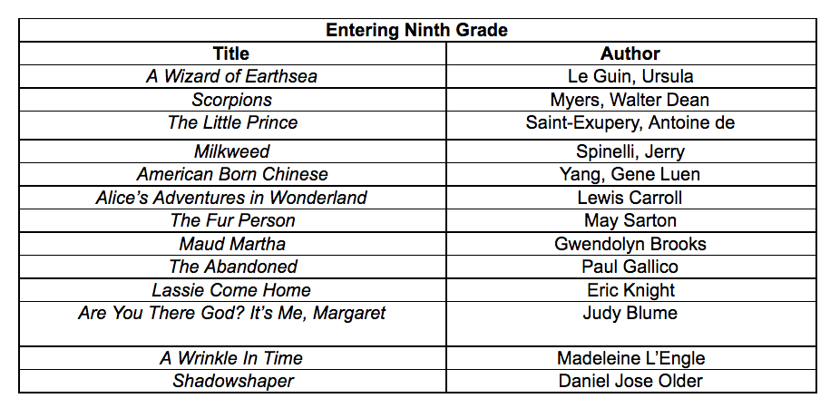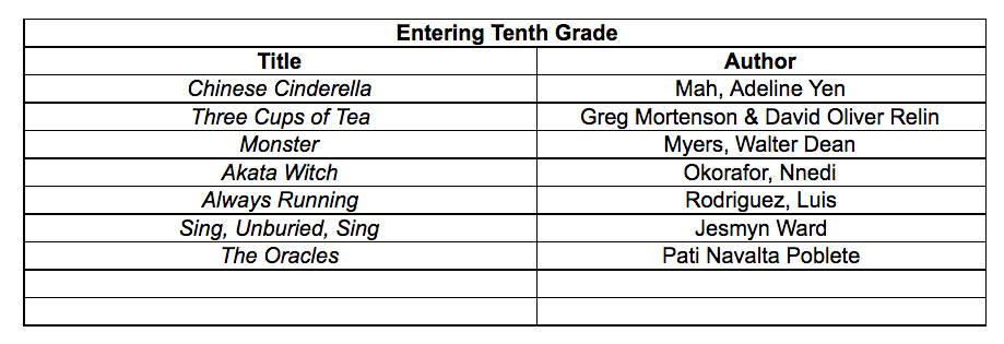 Entering 12th Grade Reading ListEntering 11th Grade Reading ListEntering 10th Grade Reading List