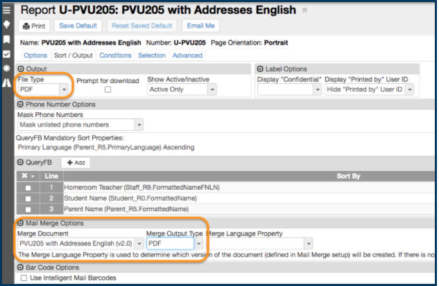 - Leave the fields in Option tab blank, or specify which grade levels you want to print the letter for.