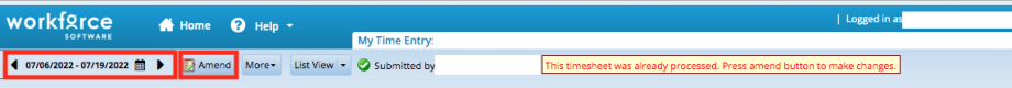 - Confirm you are on the previous pay period that needs to be amended by scrolling left < on the date range.