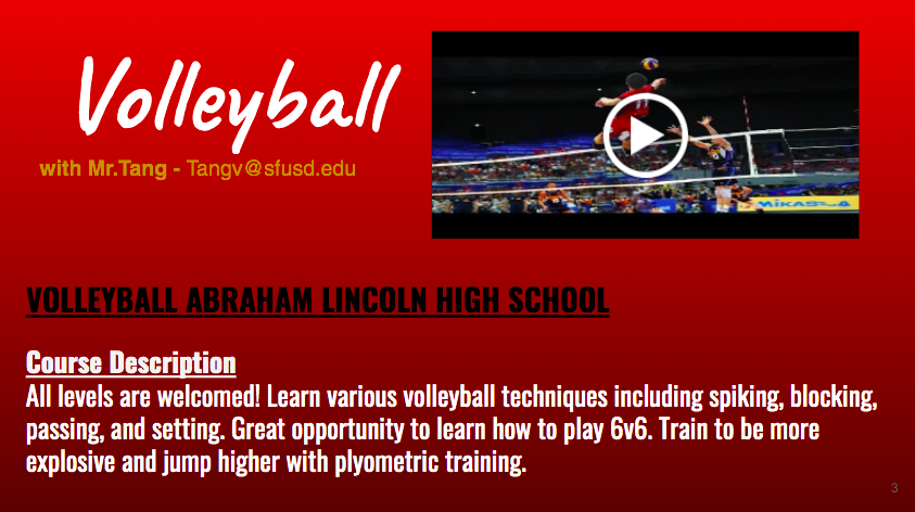 Lincoln Physical Education provides a diverse and unique variety of sports and activities: walking, running, weight training, core training, comprehensive team games, team sports, volleyball, soccer, Badminton, basketball, track, softball, ultimate frisbee, swimming, CPR training, jump rope and dancing.