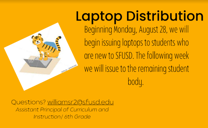 On Monday, August 28, we will begin issuing laptops to students who are new to SFUSD. The following week, we will issue to the remaining student body.