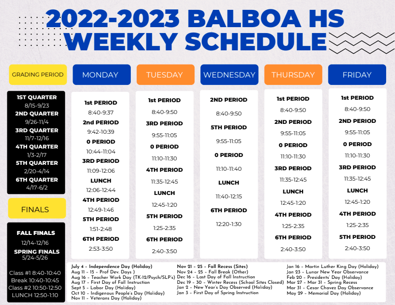 Balboa High School 2025-2026 Bell Schedule Link to this section