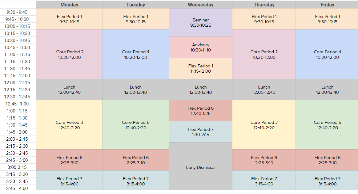 | 9:15 - 9:30 | Arrival | Arrival | Arrival | Arrival |