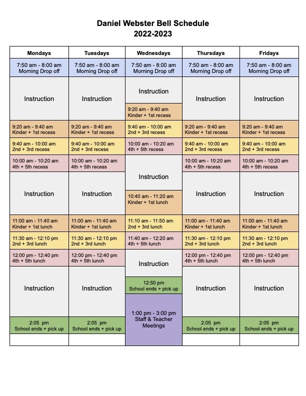 • 2:05pm dismissal Monday, Tuesday, Thursday, Friday