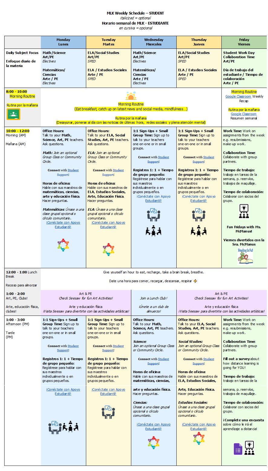 o Gives some ability to adjust mid-week based on student need without overwhelming content (especially given some kids may not be able to devote 8 hours to school in the current context)