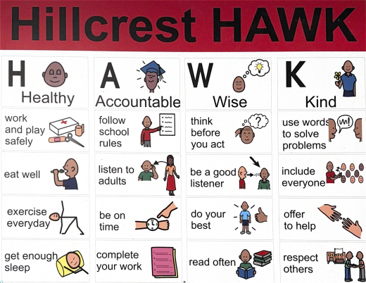 | work and play safely | follow school rules | think before you act | use words to solve problems |