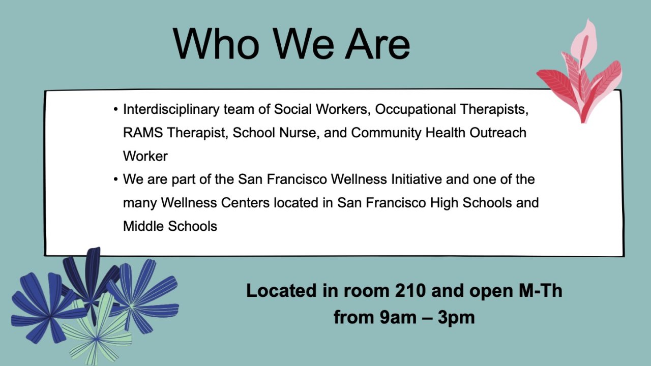 3rd Street Youth Center & Clinic(415) 822-1707Monday - Friday from 1:00-5:00pmDrop-In available!No insurance needed or Medi-Cal