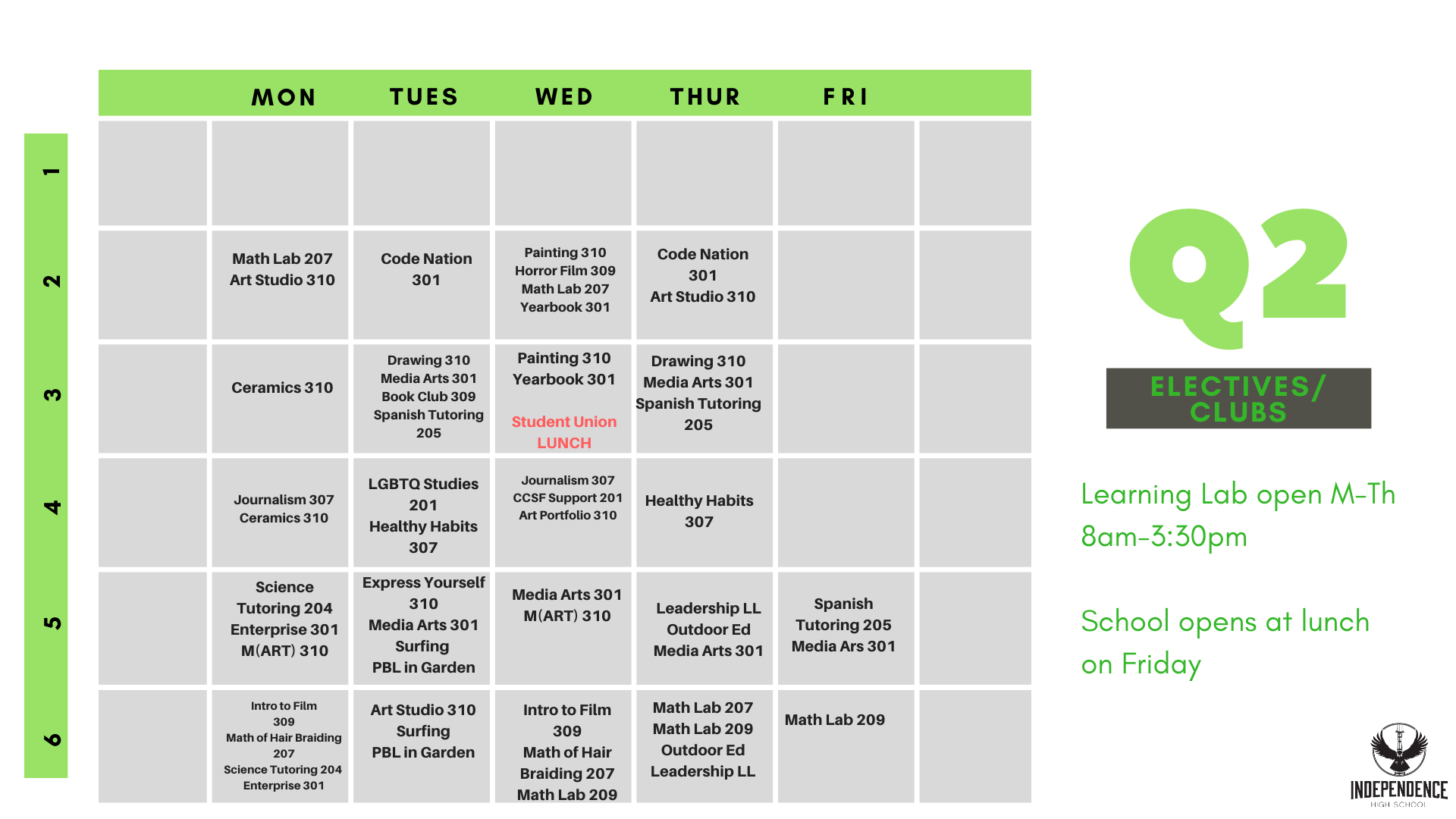 Join us at lunch time for community-building clubs, like doll-making, Connect-Four Tournament, and cooking!