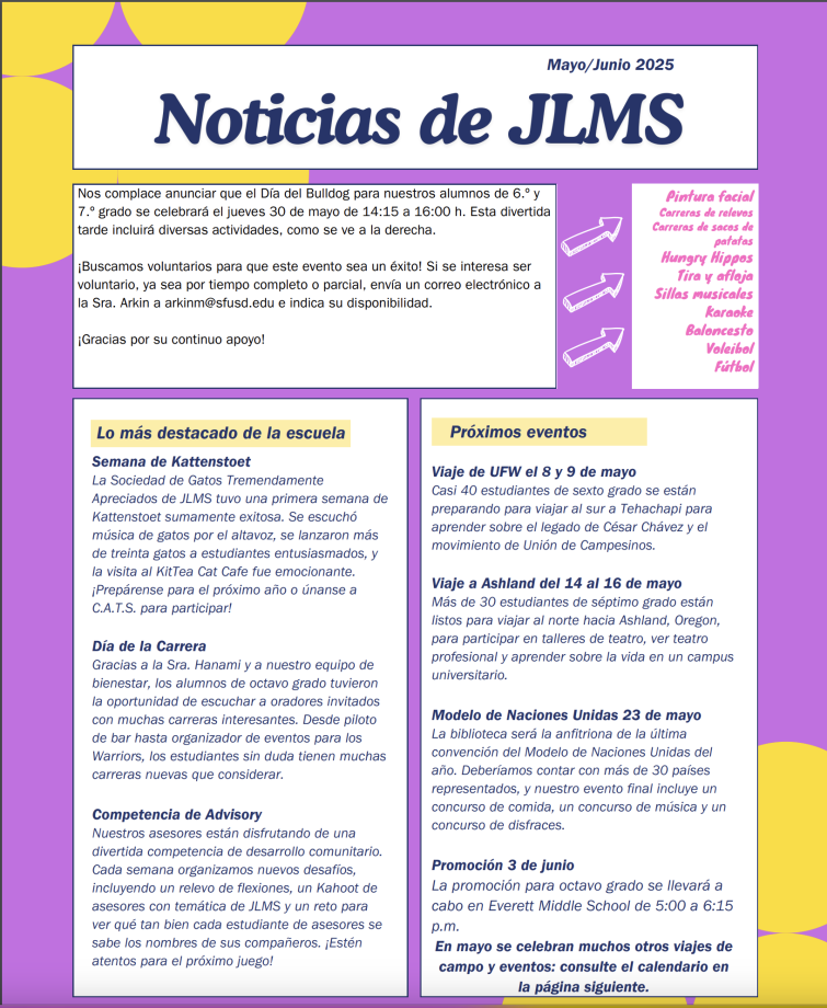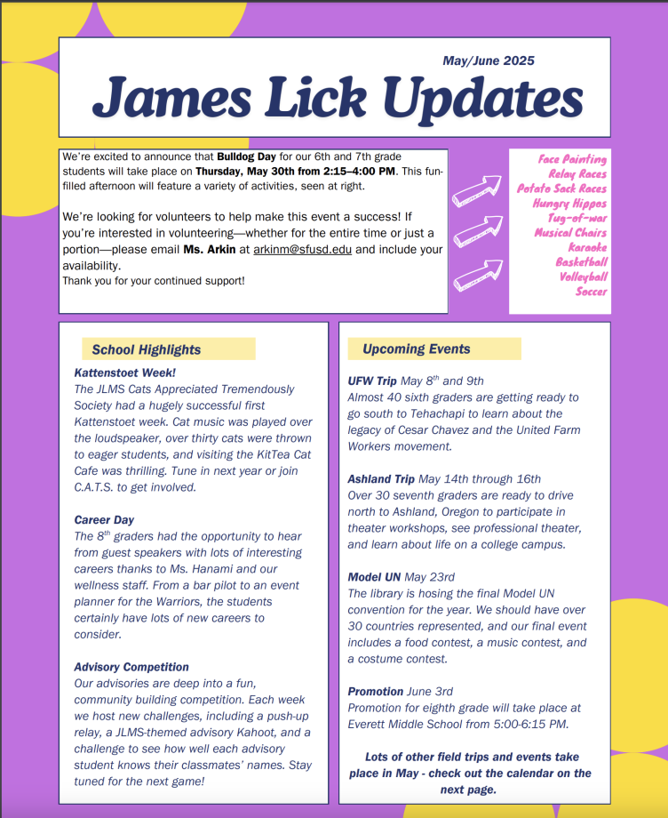 Home of the Bulldogs! We are a diverse, comprehensive middle school in the heart of Noe Valley with a thriving Spanish Immersion and Visual and Performing Arts Program.