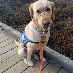 Some of the activities I love to do are going for long walks, cuddling, being read to, playing with my toys, and alerting Ms. Jer when certain sounds go off. I truly love my job! Other things I'm not too crazy about are taking baths, not getting fed on time, and other dogs pretending to be service dogs inside stores. This distracts me from doing my job.