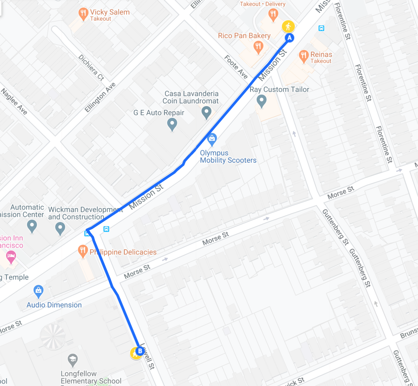 The walk leaves each Monday at 8:15am from the sidewalk in front of the 5454 Mission St. McDonald's and travels south on Mission before crossing east on Lowell and entering the Longfellow schoolyard at the Lowell St. entrance. If we are Sheltered In Place due to COVID19, the street cleanup will be held instead.
