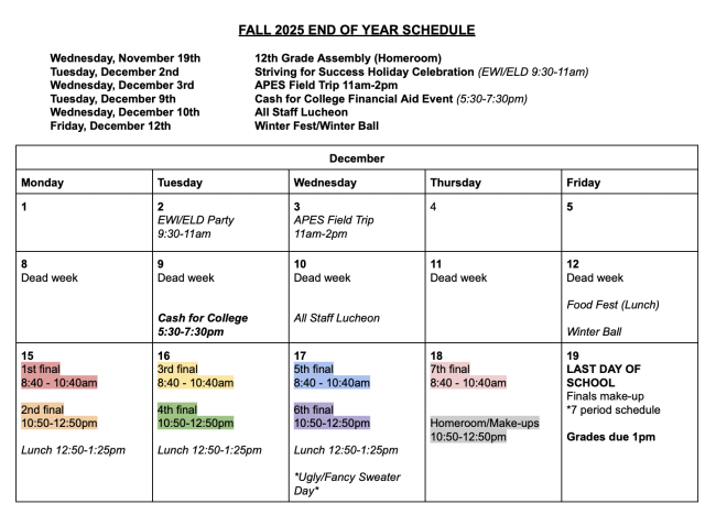 Announcement Details Posted on December 4, 2025 Announcement Message This is the schedule for finals week for the Fall semester Announcement Links