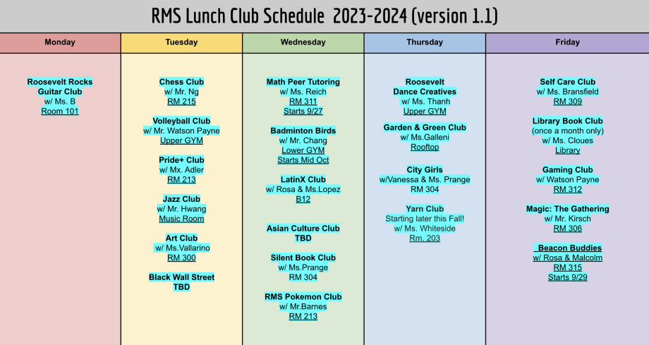 RMS Lunch Clubs!
