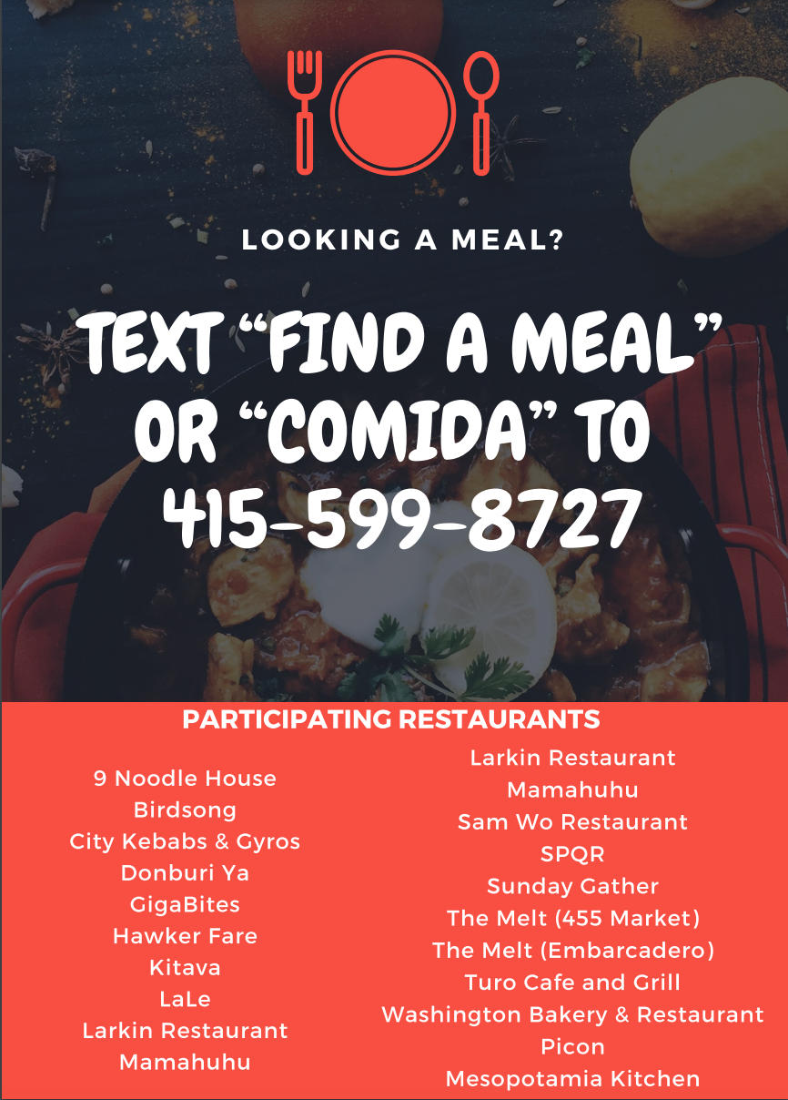 Text "FIND A MEAL" or "COMIDA" to 415-599-8727.