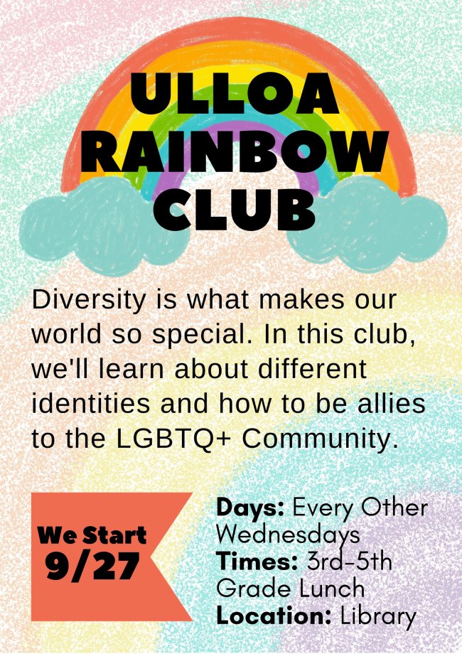 Diversity is what makes our world so special. In this club, we'll learn about different identities and how to be allies to the LGBTQ+ Community.