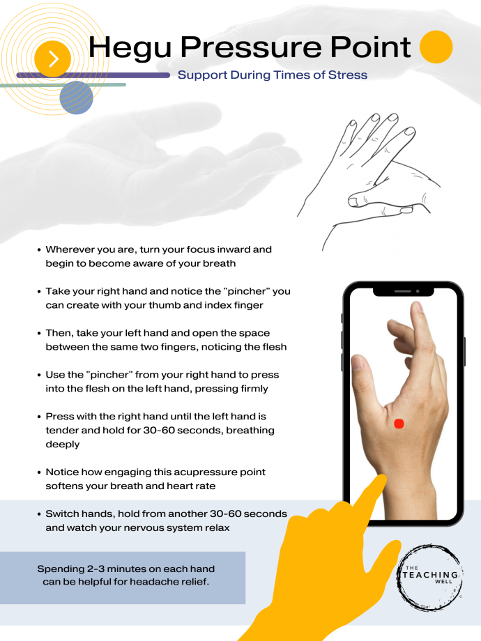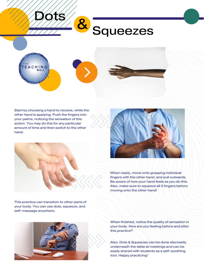 Body brushing engages our largest organ in our body to access the nerves of our skin that can calm the nerves in our mind. Additionally, using our hands to brush our skin can promote more flow in our lymphatic system, which can lead to increased immunity to the stressors of our body. Click the linked images below for a walk-through video and downloadable pdf for this exercise.