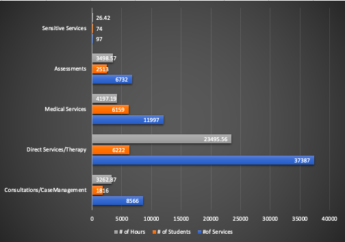 12, 381 (unduplicated) in Direct Services/ Therapy and Medical Services 79% of the student population (15,733 in 2021-22) |