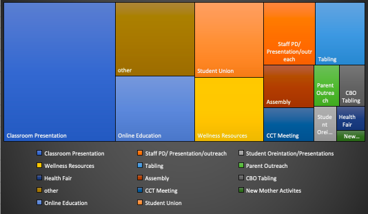 Wellness Centers provided 959 health promotion activities reaching 105,461 students (duplicated), including