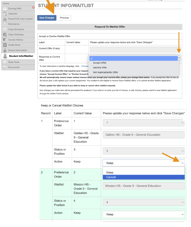 Check Waitlist Status and Respond to Offers in ParentVUE Link to this section