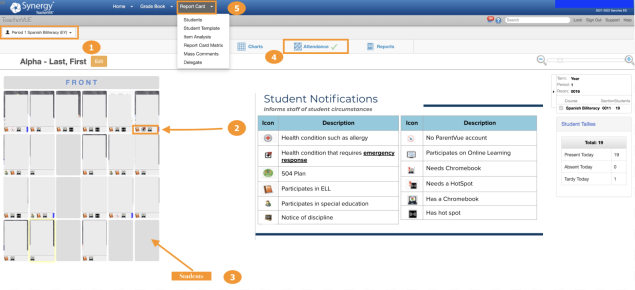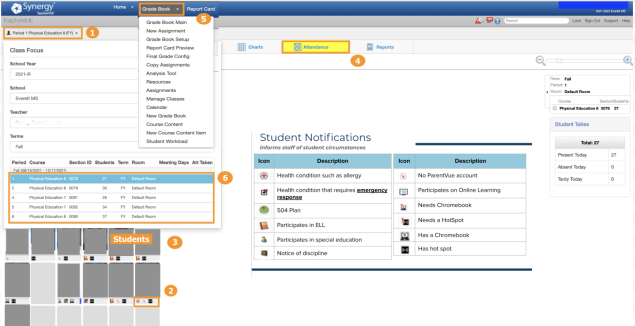 1. Class Tab > This tab will only have an option to drop down if you teach more than one class.
