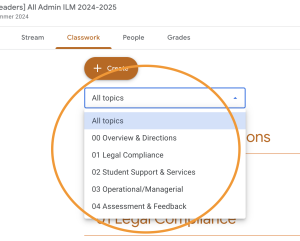 4. Return to this Classroom throughout the year to access this essential information. Use the Topic dropdown menu to find materials more efficiently. Contact information is provided for all ILM materials if you need department-specific support.