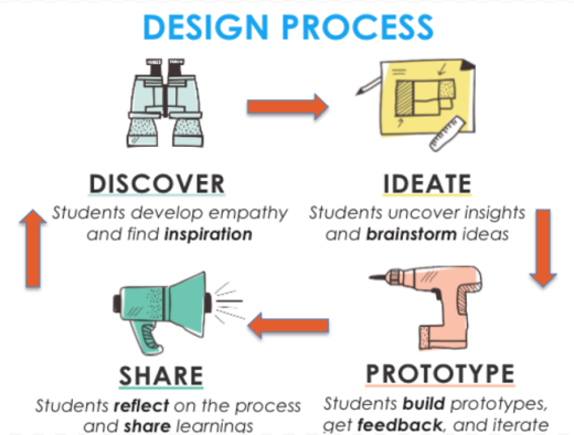 Design Thinking are the Practices and Process for Creative Problem Solving. In this unit, students are introduced to the following practices: Discovering insights, Ideating solutions, Prototyping designs, and Sharing to get feedback.