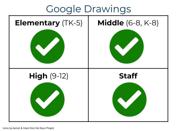 All staff and students in SFUSD have access to create, edit, & share Google Drawings.