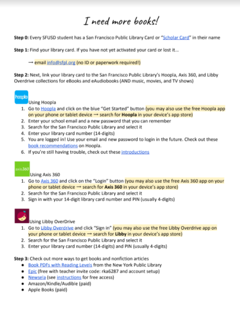 - Hoopla Help (ebooks, audiobooks, movies, music)