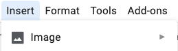 Insert menu - The insert menu is in the menu bar, and you use to insert various items, such as images or videos, into your document. You can also insert a table from this menu.