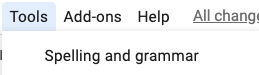 Tools menu - The tools menu offers different tools you can use to scan the entire document, such as spellcheck, the dictionary, Voice Typing (you speak and Docs types for you), and translation. Learn more about using the built-in translation tool in Docs.