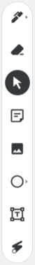 Jamboard tool bar - This tool bar has several buttons that let you add different items to the jam. You can draw with the pen tool, erase with the eraser tool, add a sticky note to type, put in a textbox, add some shapes, or insert an image onto your jam. All of these items can be manipulated, resized, and moved around.